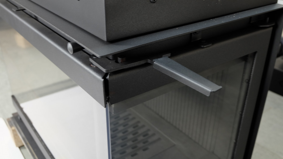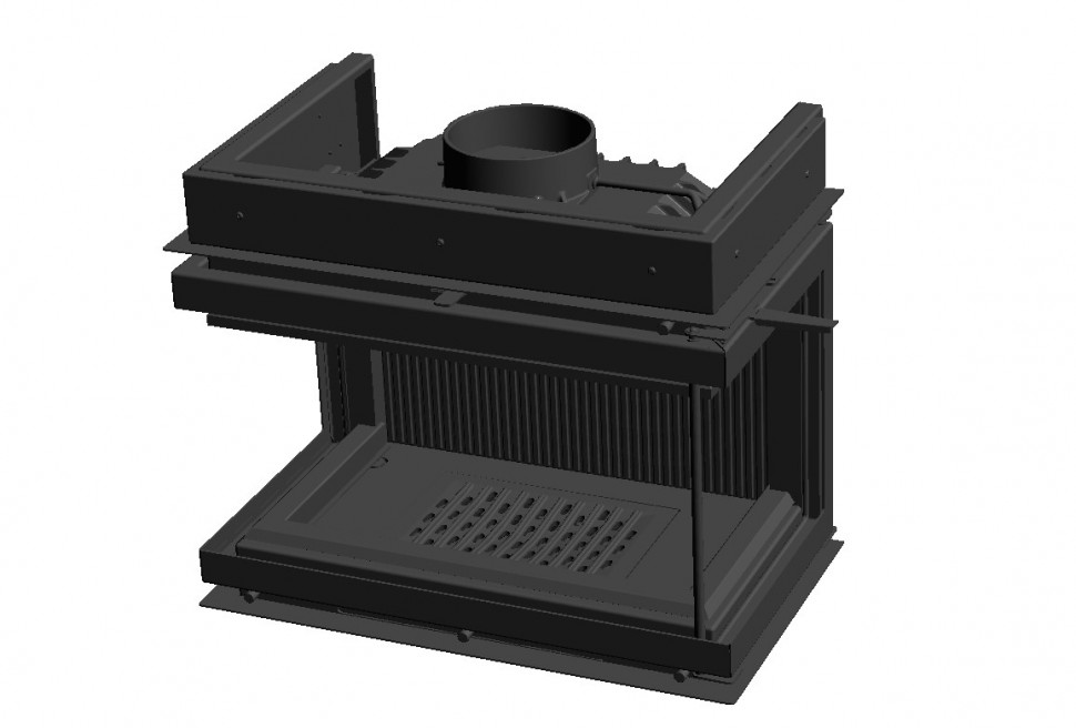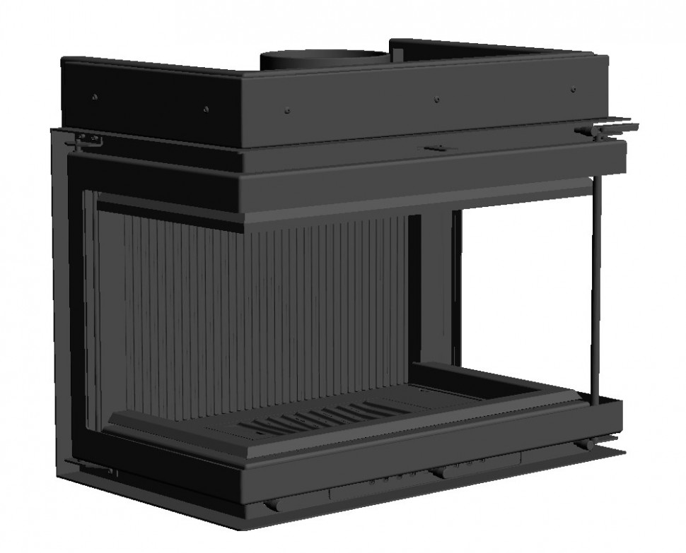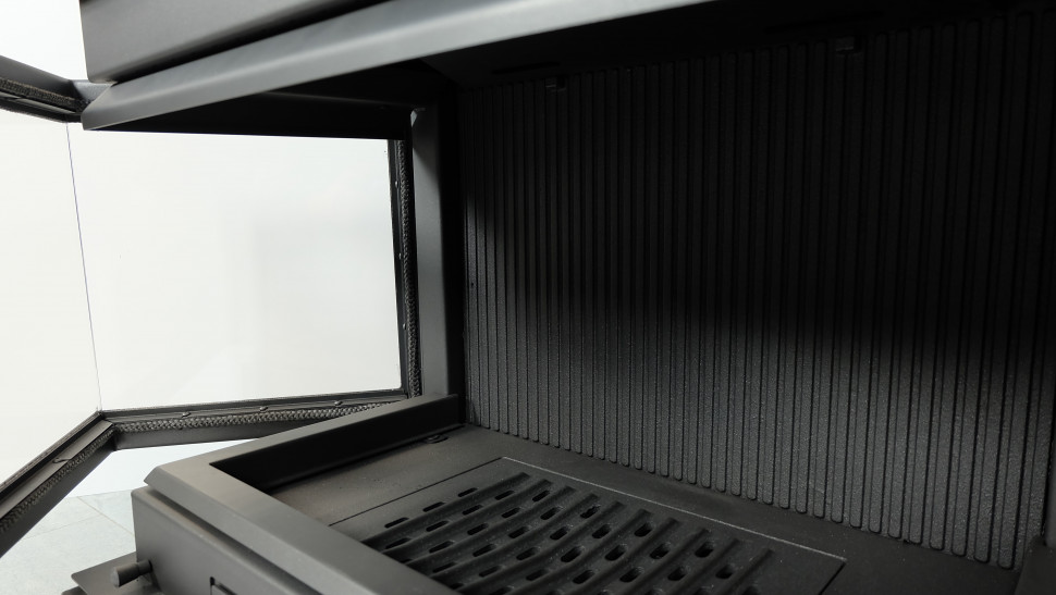 - Остекление. Три жаропрочных стекла ROBAX без перемычек. П-образная стальная дверца с боковым открыванием: для загрузки дров открывается Г-образная часть дверцы с помощью съёмной ручки в правом верхнем углу.