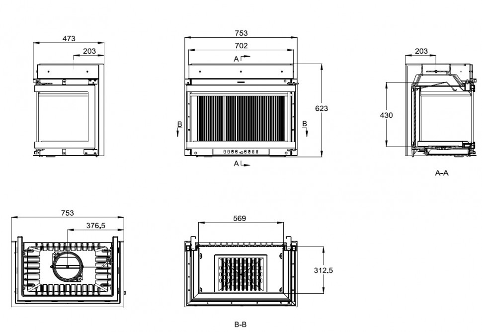 - Диаметр дымохода. 200 мм, подключение верхнее.